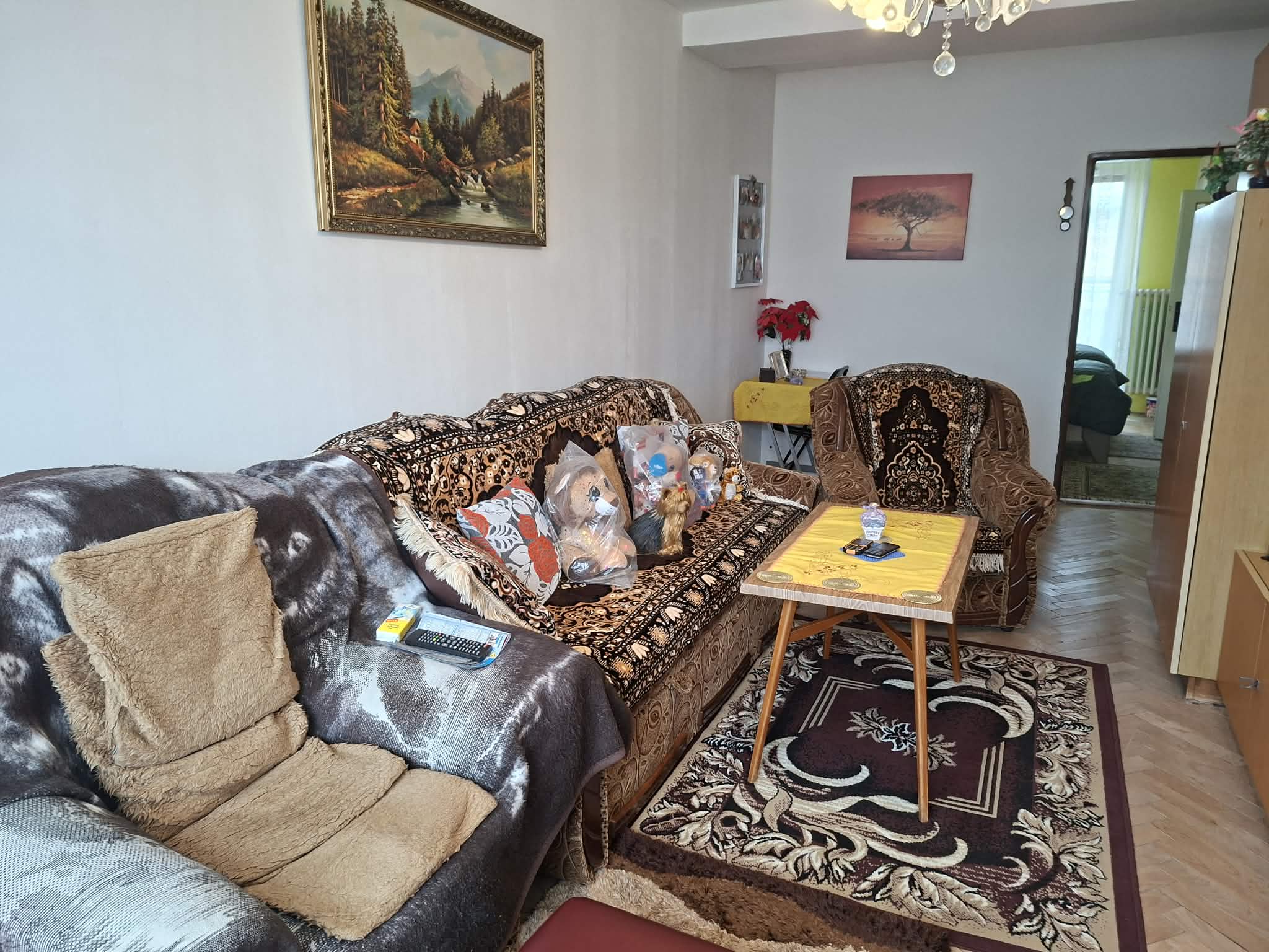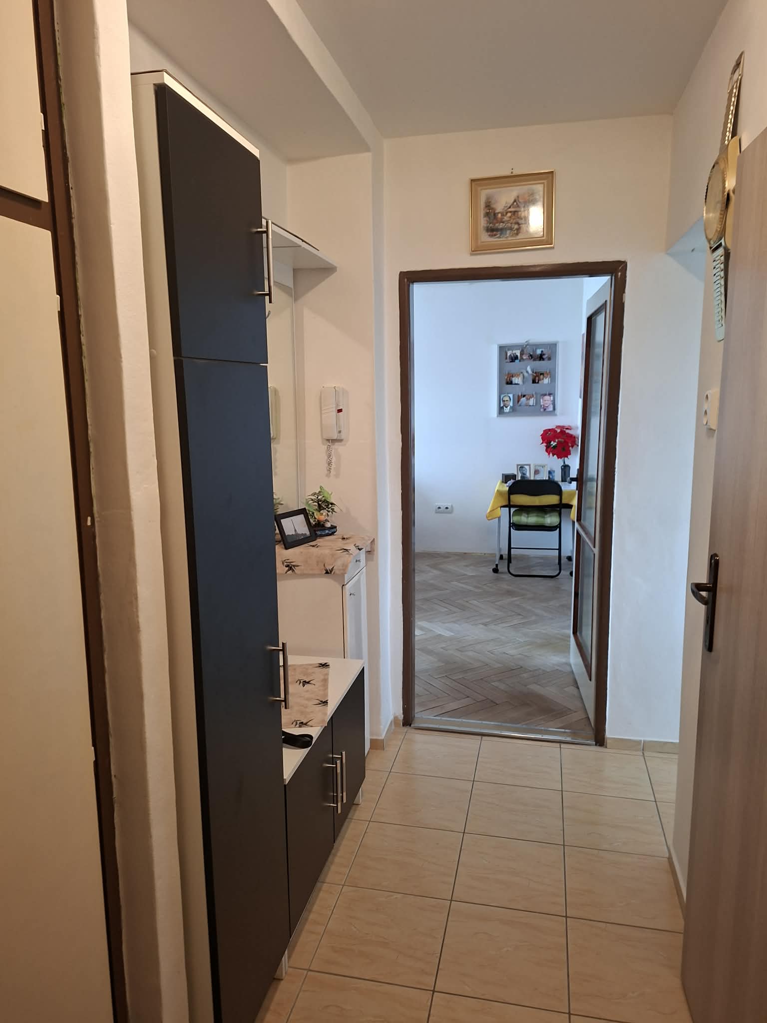 Je čiastočne zrekonštruovaný -plastové okná so žalúziami, nová elektroinštalácia. Murované jadro,kuchynská linka v izbách parkety.
